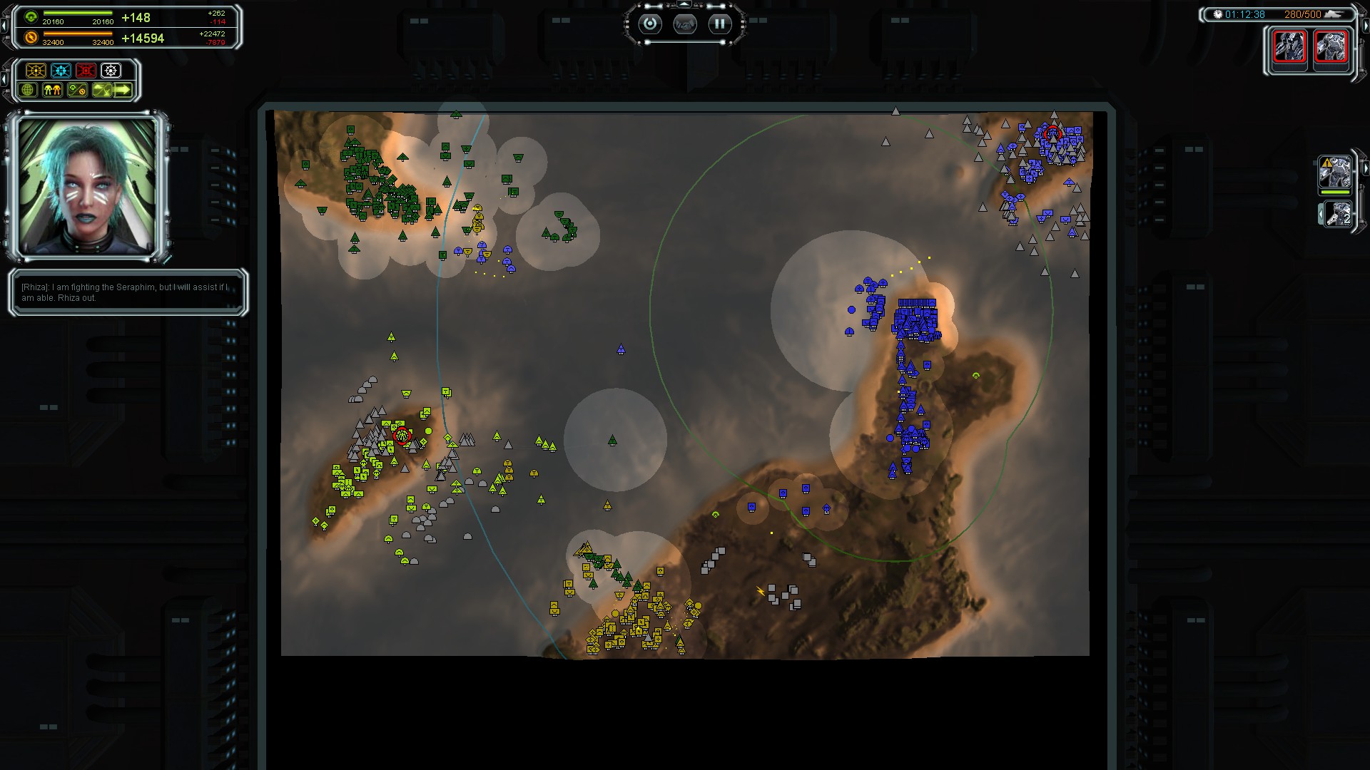 - Vrhnete všechny jednotky do útoku a po těžkém boji porazíte nepřátelské ACU. Najednou se mapa rozšíří a proti vám se žene čerstvá armáda, navíc z opačného směru, než jste vy. V tento okamžik se nedá nic dělat a je nutné se vrátit k uložené pozici.